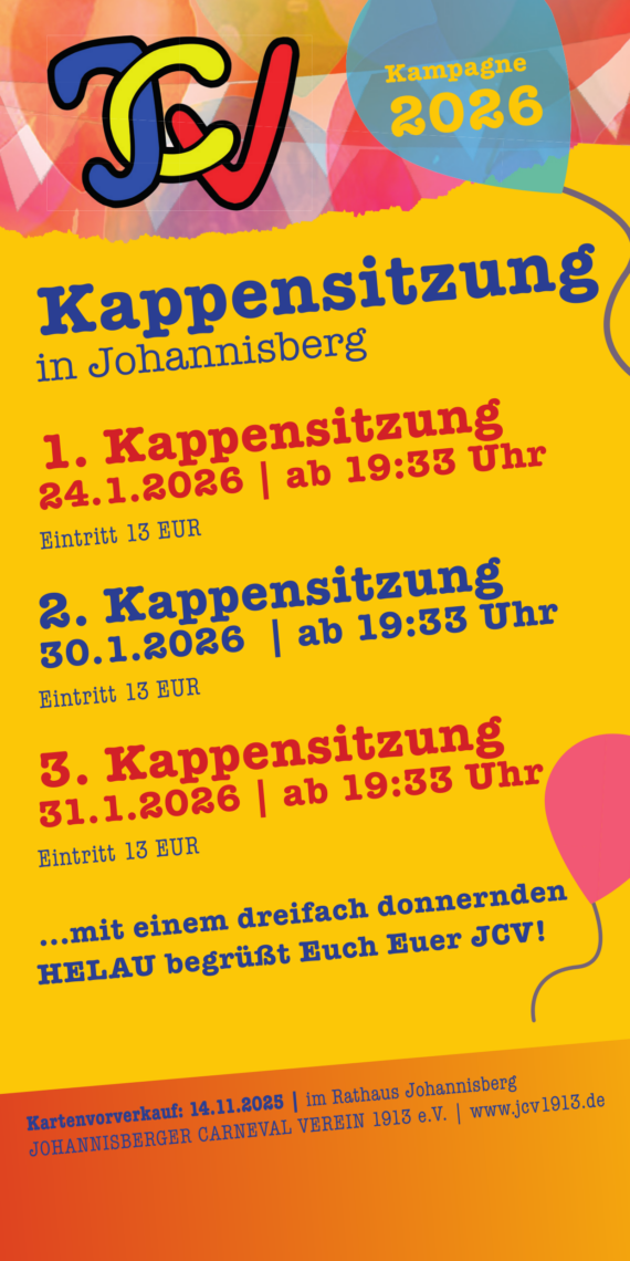 Der Johannisberger Carneval Verein 1913 e.V. lädt herzlich zur Eröffnung der Kampagne 2025/2026 ein! Am 14. November 2025 ab 18:11 Uhr starten wir vor […]